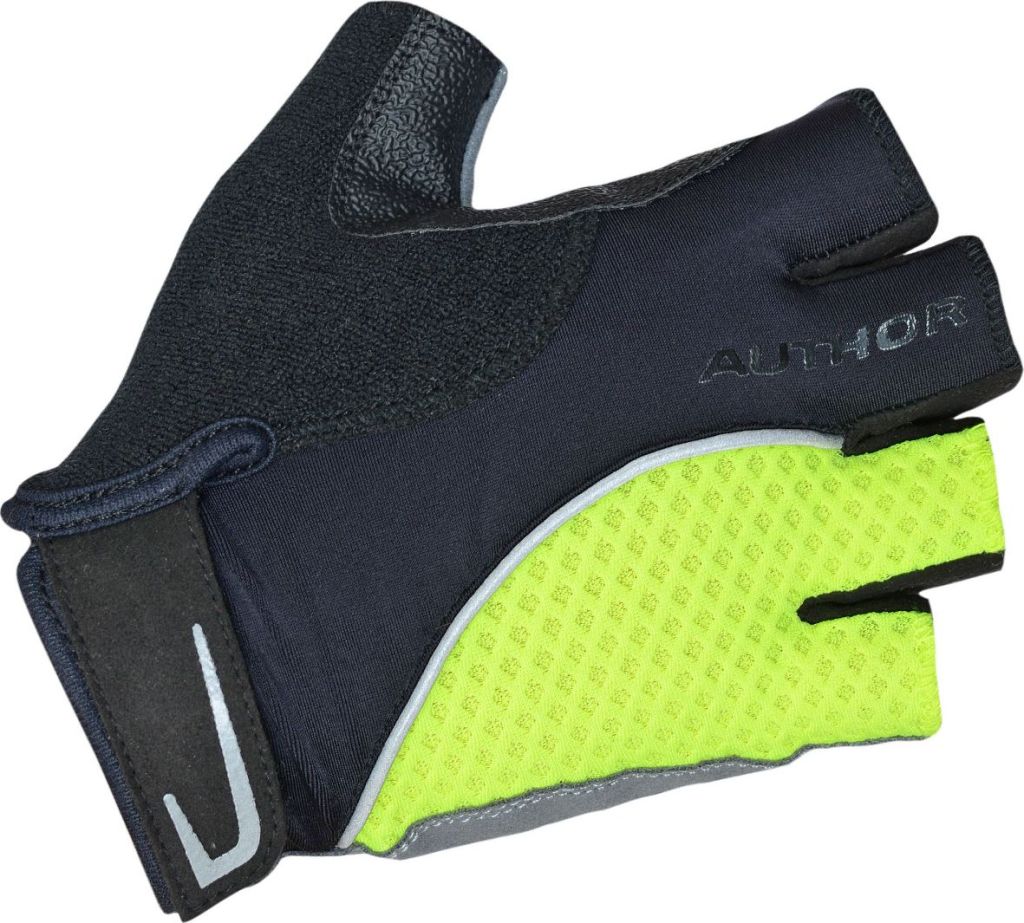 Классический спортивный крой, короткие пальцы и гелевые вставки со стороны ладони для амортизации. Изготовлены из высокопрочных дышащих тканей. Со стороны ладони, где перчатки испытывают наибольшую нагрузку, использована искусственная кожа. С тыльной стороны - сетчатые тянущиеся вставки для большей свободы движений и световозвращающие полосы. Фиксация производится путем закрытия стрепы с велькро на запястье. Указан европейский размер.