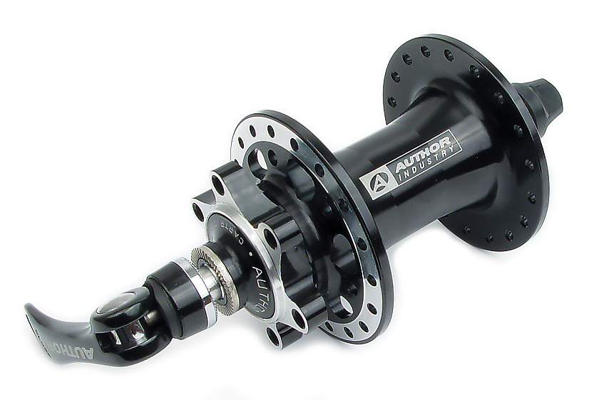 Качественная передняя втулка Author ACO-H04D. Корпус втулки выполнен из алюминия методом фрезеровки, в который впрессованы 2 японских промышленных подшипника, прикрытые фрезерованными алюминиевыми пыльниками. Для тормозного диска стандарта IS6 (6 болтов).