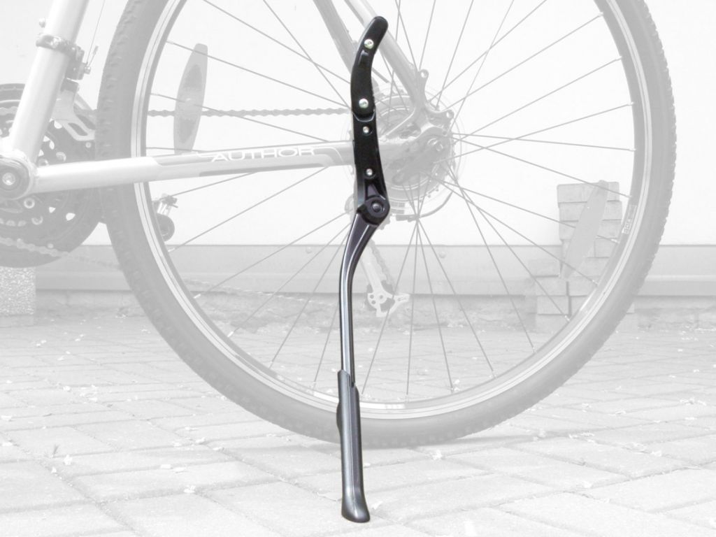 Легкая регулируемвя алюминиевая подножка для велосипедов с диаметром колеса от 24 до 29". Регулируемая длина ноги, резиная набойка. Подходит практически ко всем велосипедам: крепление через два пера рамы. Мощная пружина исключает открытие подножки при съезде с бордюра или на плохой дороге.