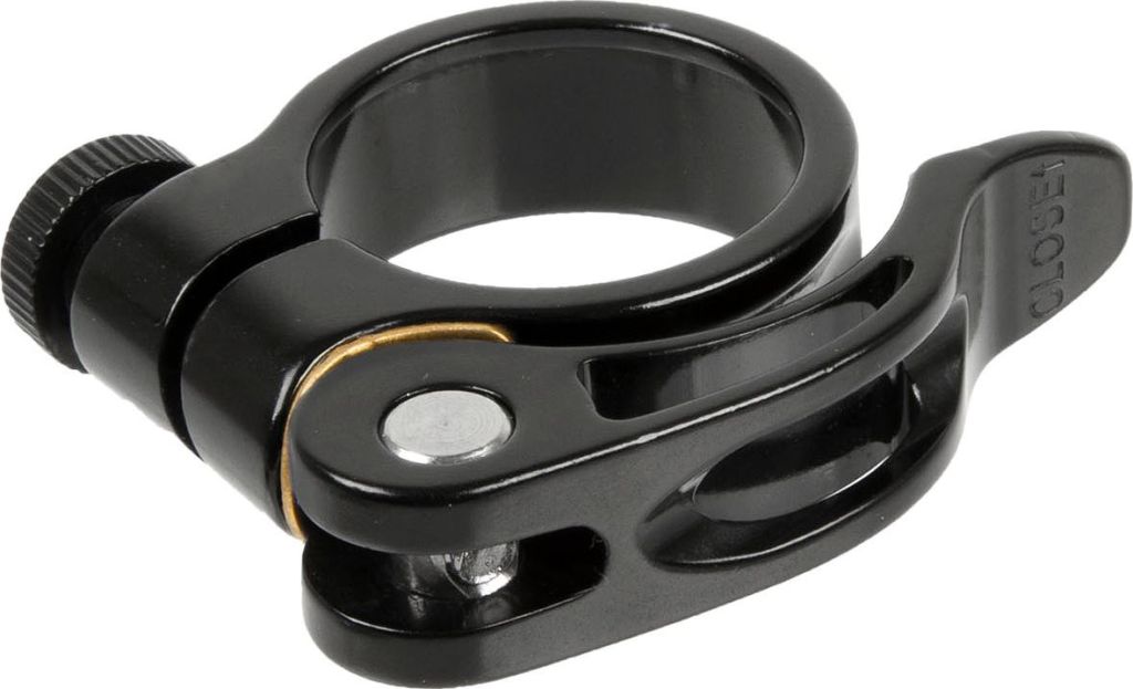 Подседельный хомут с логотипом ACME Zoom AT-101+SQR-116. Оснащен рычагом с эксцентриковым зажимом, таким образом, не требует использования инструмента для регулировки высоты установки подседельного штыря.