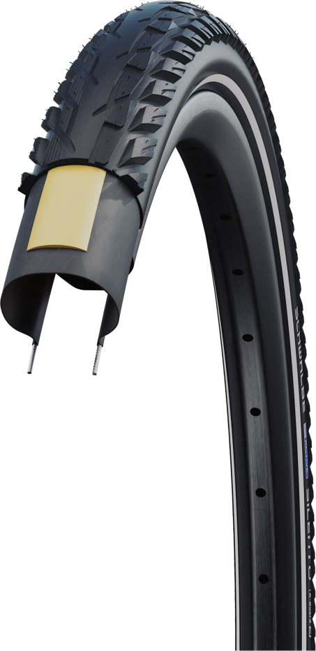 Schwalbe Silento - современная универсальная резина с широким спектром применения. Silento имеет гладкую центральную дорожку, позволяющую поддерживать высокую скорость как на асфальте, так и на гравии. А благодаря грунтозацепам по бокам протектора можно оставаться уверенным в точном прохождении поворотов.