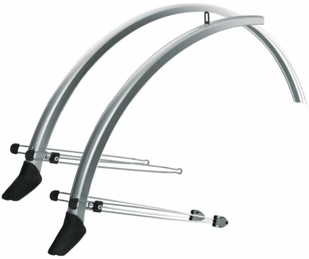Комплект полнопрофильных крыльев SKS Commuter Road для переднего и заднего колеса с жестким креплением к велосипеду. Прочные крепежные усы диаметром 3 мм из нержавеющей стали, гибкий, ударопрочный пластик, предотвращающая скапливание грязи внутренняя поверхность. Являются практически безальтернативным выбором для всех hi-end производителей прогулочных велосипедов - гибкая система отстройки позволяет подогнать крыло точно по профилю колеса практически на любом велосипеде.