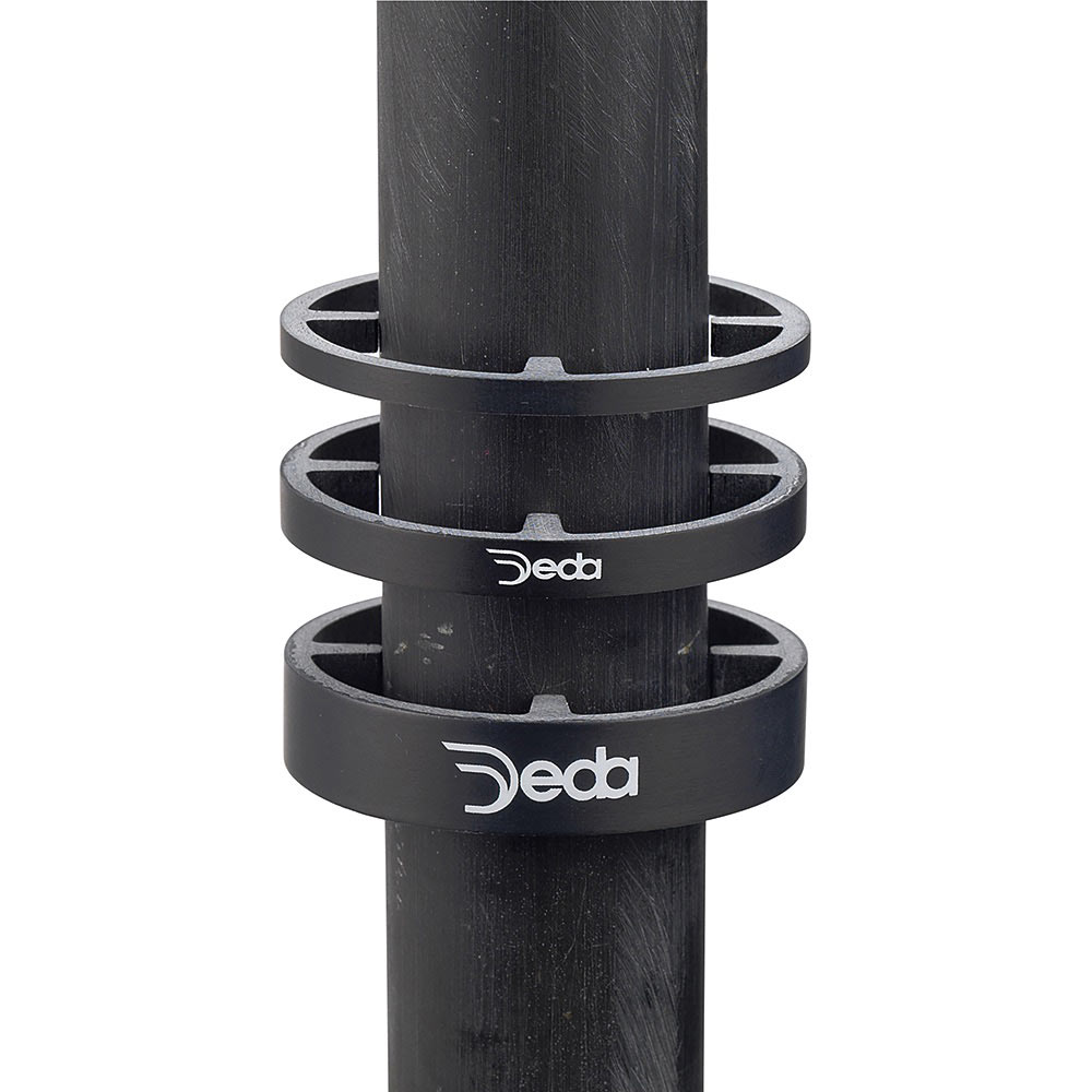 Главным отличием Deda HSS от классических проставочных колец является увеличенный внешний диаметр, идеально совпадающий с диаметром рулевого стакана. Таким образом, нижнее кольцо устанавливается не на крышку рулевой колонки, а прямо на торец рулевого стакана рамы и становится её продолжением, что делает внешний вид велосипеда более чистым и целостным. Для сборки полной системы вам потребуется рулевая колонка Deda Elementi.