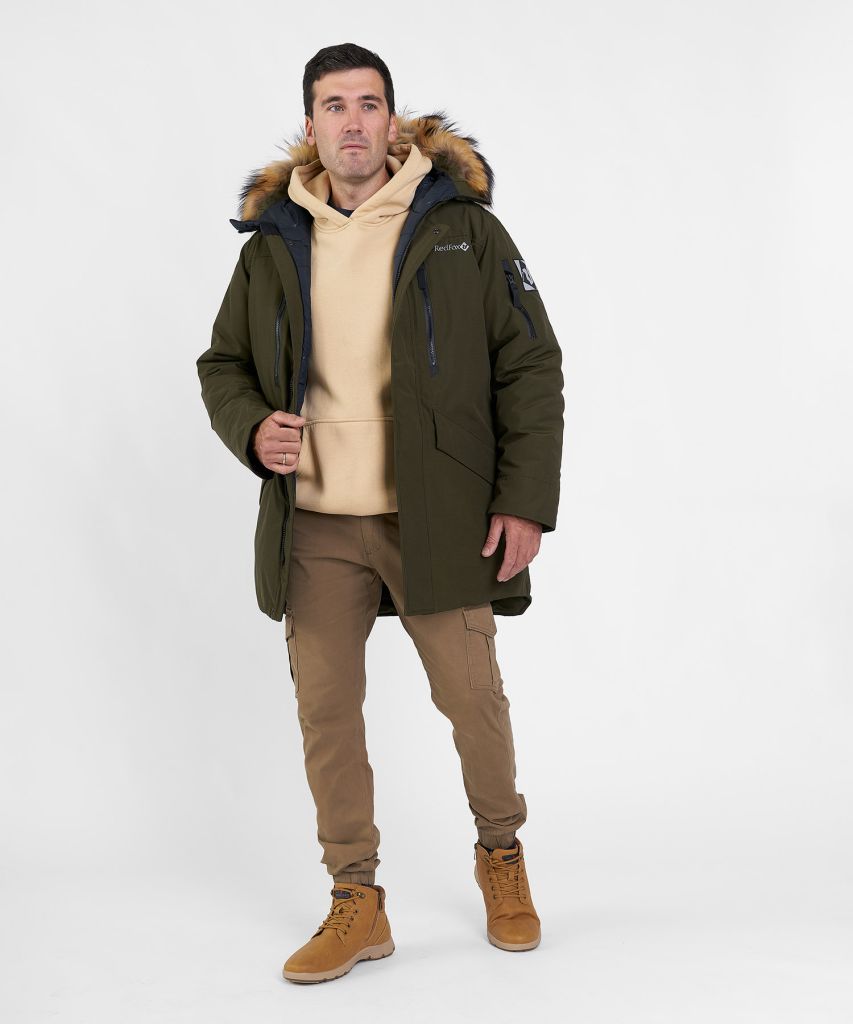 боковые разрезы на влагозащитных молниях c подпланками, обеспечивающие доступ к карманам брюк;