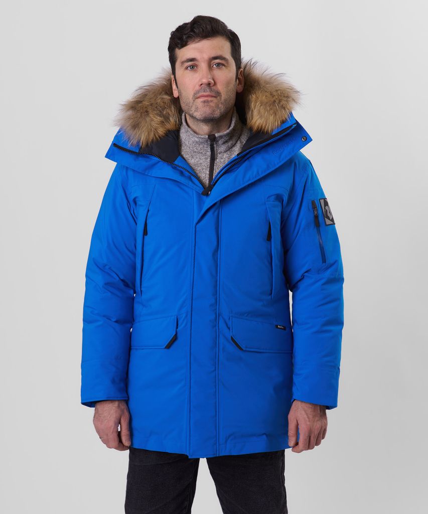 Куртка пуховая Kodiak D II МужскаяСоздана для тех, кто не боится настоящего холода. Эта куртка — результат инженерной мысли и опыта Red Fox в экипировке для арктических экспедиций. Благодаря мембране Toray Entrant™, утиному пуху 90/10 с индексом 650+ и продуманной системе защиты от ветра и влаги, она обеспечивает максимальное удержание тепла даже в самых суровых условиях.Основные характеристикиОсновное назначение: полярные экспедиции, путешествия, загородный отдыхТемпературный режим: до –40°CПосадка: Regular Fit — свободная, но не громоздкаяДлина по спинке: 88 см (размер M, до середины бедра)Размерный ряд: S–XXLМатериалы и технологииВнешний слой: Toray Entrant™ (100% нейлон 2-way stretch, 135 г/м², 2-слойная ламинация) — водо- и ветрозащита 20 000 мм, дышащие свойства 20 000 г/м²/24 ч, пропитка DWR.Утеплитель: утиный пух 90/10 с пуховым индексом 650+ — высочайшая теплоэффективность при минимальном весе.Подкладка: 100% полиэстер, 76 г/м² — прочная, мягкая, способствует равномерному распределению пуха.Дополнительный утеплитель: синтетический слой в области плеч — дополнительная защита от холода.Функциональные деталиРегулируемый по высоте капюшон-тубус — плотно облегает голову и не мешает обзоруСъёмная опушка из натурального меха енота на кнопках — дополнительная защита от ветра и морозаМикрофлисовая подкладка в области подбородка — комфорт и защита от раздраженияВетрозащитная планка на магнитных кнопках + подпланка — полная герметизация центральной молнииНагрудные карманы на молниях с подкладкой из флиса High Loft — руки и мелочи всегда в теплеБоковые карманы на молниях с клапанами на магнитных кнопках — надёжная защита от снега и влагиКарман на рукаве с влагозащитной молнией — для пропуска или гаджетовРегулировка объёма в области талии, выведенная в карманы — точная посадка без внешних кулисокРукава с регулировкой длины — подстраиваются под рост и перчаткиУдлинённые внутренние трикотажные манжеты — исключают продувание и удерживают теплоВнутренние карманы на молнии — безопасное хранение ценных вещейВнутренние лямки для ношения куртки внутри помещенияБольшие пуллеры из материала Hypalon® — легко застёгивать даже в толстых зимних перчатках