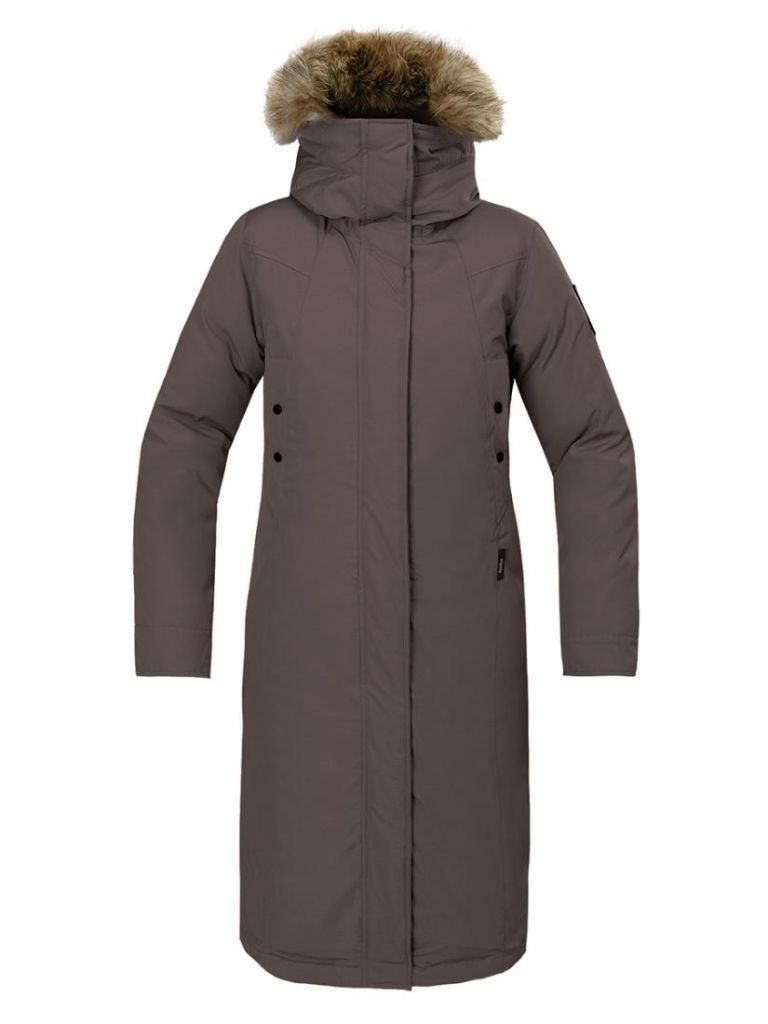 Женское пуховое пальто Aurora II из коллекции Arctic создано для холодных зим в северных широтах. Наружный материал с добавлением хлопка обработан водоотталкивающим составом DWR и антигрязевым составом, благодаря чему капли воды и грязи легко удаляются с поверхности пальто. Натуральный утиный пух с показателем Fill Power 650+ обеспечивает превосходную теплоизоляцию. В плечевой зоне предусмотрен дополнительный слой синтетического утеплителя, удерживающего тепло под дождём и мокрым снегом.