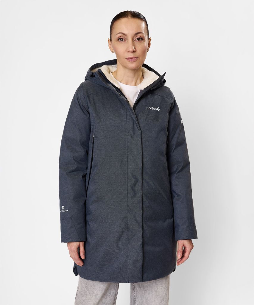 Внешний материал: Dry Factor® Advance (100% полиэстер, 171 г/м²) — мембранная ткань с водонепроницаемостью 5000 мм, дышимостью 5000 г/м²/24 ч и водоотталкивающей пропиткой DWR. Надёжно защищает от снега, дождя и ветра.