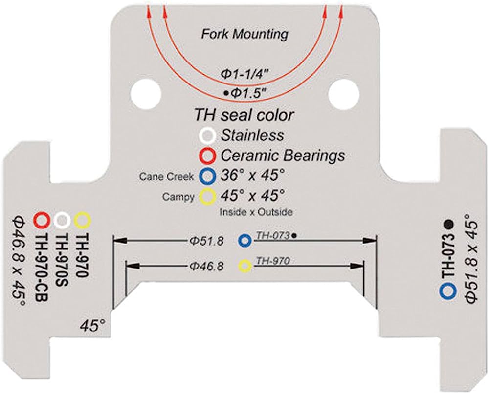 Фирменный инструмент FSA для измерения и определения типа подшипников (их размеров, контактных углов) рулевых колонок стандартов 1-1/4" и 1.5". Незаменимое решение для мастерских, выполняющих широкий спектр работ по обслуживанию велосипедов. Изготовлен из нержавеющей стали.