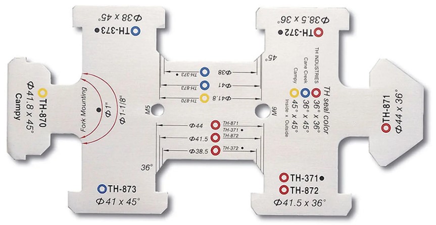 Фирменный инструмент FSA для измерения и определения типа подшипников (их размеров, контактных углов) рулевых колонок стандартов 1" и 1-1/8". Незаменимое решение для мастерских, выполняющих широкий спектр работ по обслуживанию велосипедов. Изготовлен из нержавеющей стали.