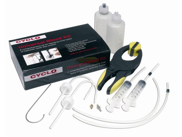 Профессиональный набор для прокачки дисковых тормозов всех основных существующих типов. Включает комплекты адаптеров для Shimano, Magura, Hope, Clark's, Hayes и M.P.H. Два раздельных комплекта емкостей и шлангов для минерального масла и DOT жидкостей.