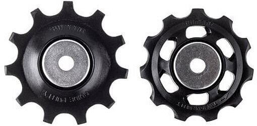 Комплект оригинальных роликов для задних переключателей Shimano Deore RD-M5120. Износостойкий композит. Направляющий ролик имеет зубья повышенной длины для более четкого переключения.