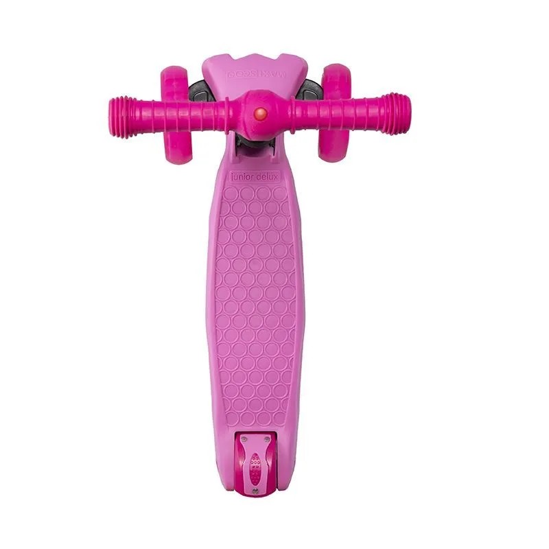 Maxiscoo Junior Delux - это универсальный детский самокат, который будет актуален и летом, и зимой. Его отличительными преимуществами является наличие специальных лыж, которые можно установить вместо колес и получить готовый снегокат. Ребенка также порадует светодиодная подсветка колес. Предназначен для детей возрастом от 3-х лет и ростом от 90 до 110 см. Максимальная нагрузка на раму: до 50 кг. Вес самоката - 3,5 кг. Основные технические особенности модели: