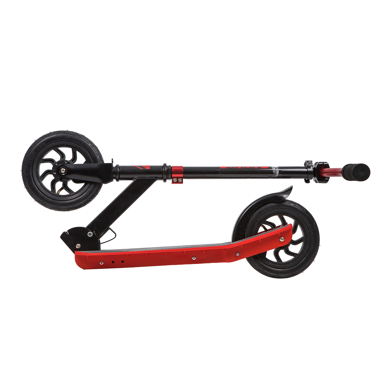 Особенности:Складной, антискользящая поверхность деки, регулируемый по высоте руль, задний ножной тормоз, надувные колеса 200 мм, подшипники ABEC 7