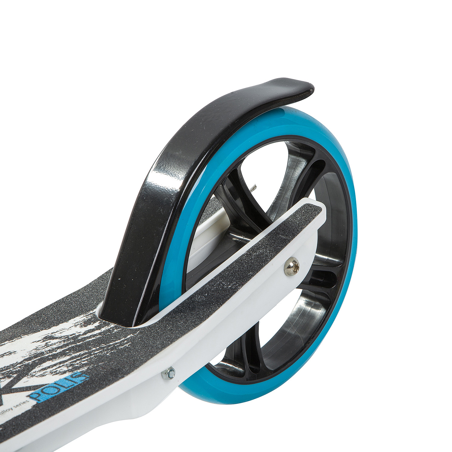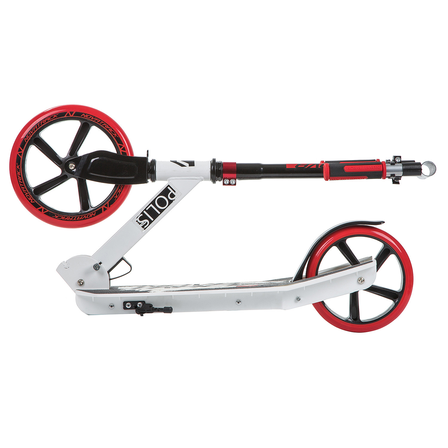 Особенности:Складной, антискользящая поверхность деки, регулируемый по высоте руль, задний ножной тормоз, PU колеса 230/200 мм, подшипники ABEC 7, подножка