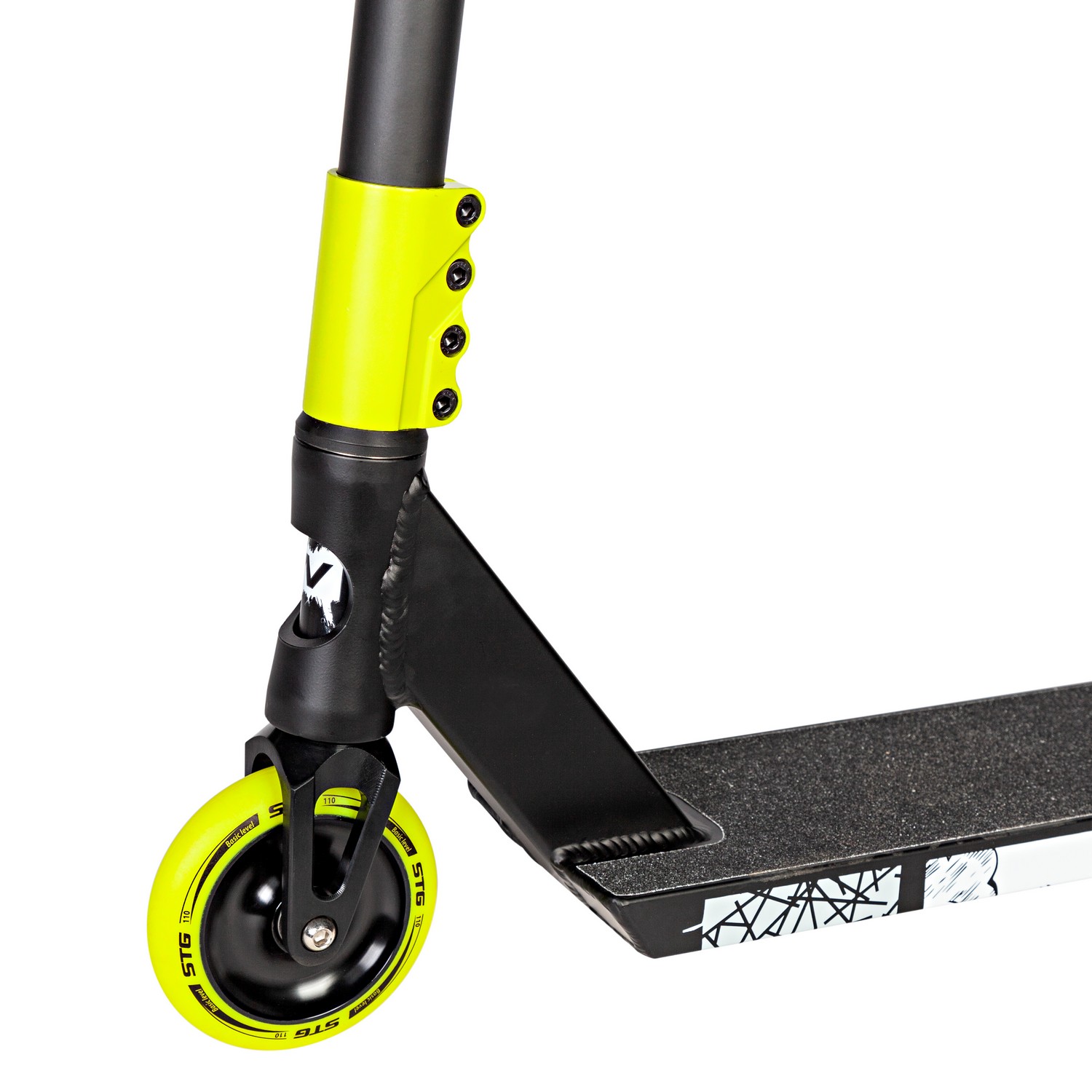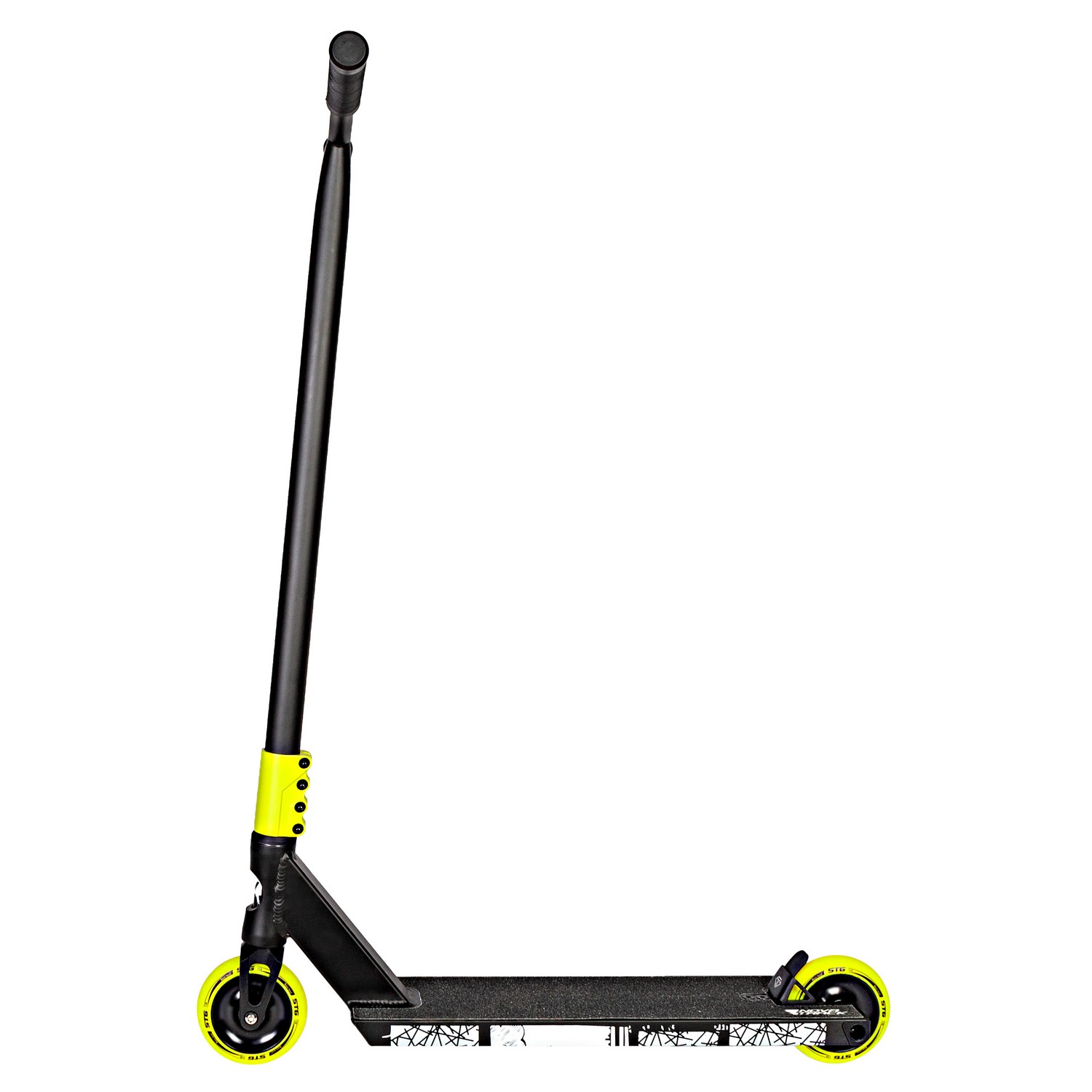 Особенности:Экстремальный, Полиуретановые колеса 110 мм (алюминиевые обода), Подшипники ABEC-9, Система компрессии SCS, Четырехболтовый хомут, Фиксированный руль (высота 66 см), Ножной задний тормоз, Дека с противоскользящим покрытием (размеры 49.5х12 см), Максимальная нагрузка до 100 кг
