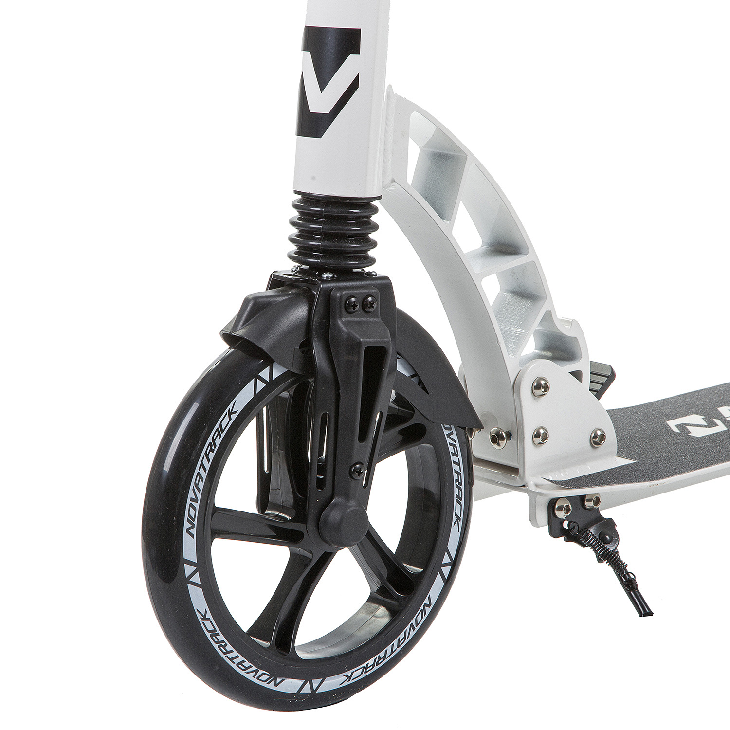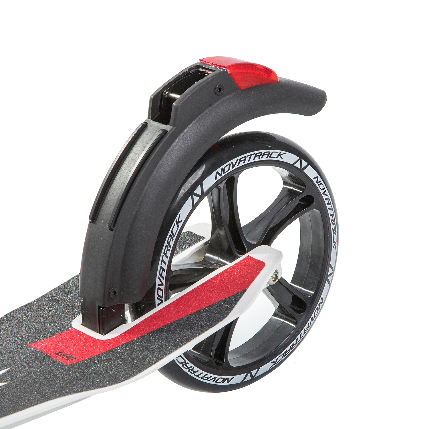 Самокат Novatrack Deft 230 PRO оснащен передним амортизатором, сглаживающим неровности городских улиц. Модель разработана для подростков 8+ и взрослых. Рама выдерживает нагрузку до 100 кг. Другие технические особенности: