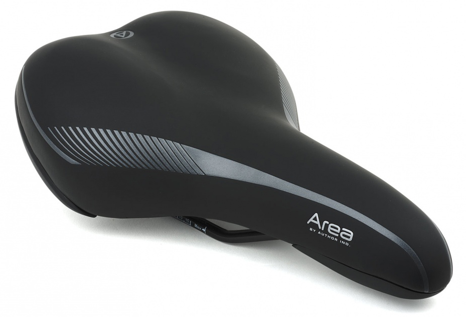 Author Area - качественное седло прогулочного класса, совместимое с любым видом велосипеда. Характеризуется комфортабельностью, толстым слоем набивки из пены высокой плотности и анатомичностью формы изгибов. Обивка седла выполнена из прочного, водонепроницаемого материала.