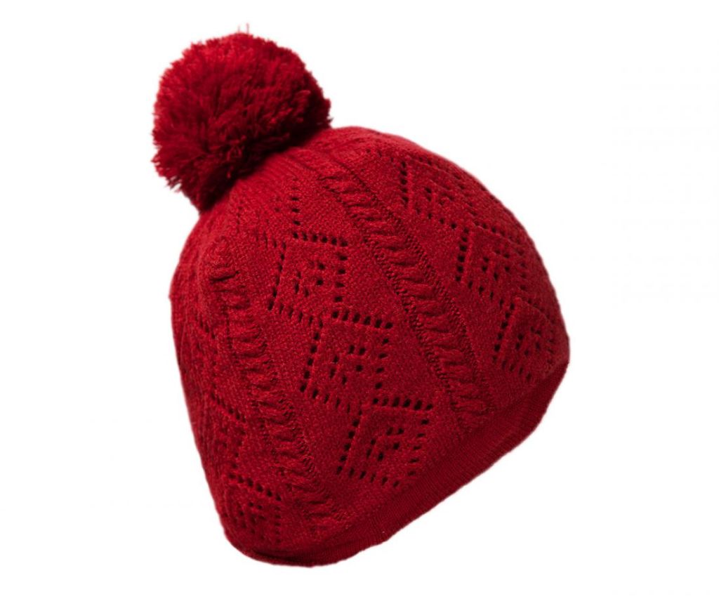 Изящная женская шапочка с помпоном и оригинальной вязкой
