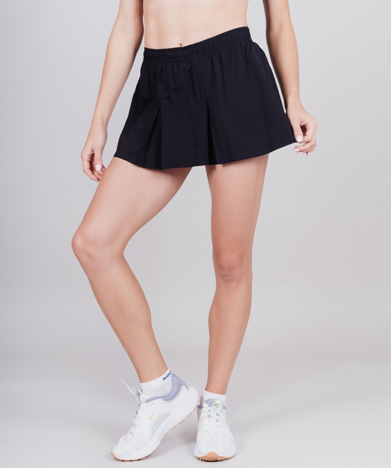 Необходимая вещь в гардеробе спортсменок. Несмотря на всю свою функциональность, смотрится очень стильно и красиво. Верхний слой юбки выполнен из «дышащего» материала, который быстро высыхает. Нижний слой – эластичное полотно, которое плотно сидит по фигуре, выполняя функцию шорт. Закрытая резинка-пояс со шнурком, для фиксации на талии. На бедре карман на молнии. Однотонный дизайн позволяет комбинировать с любыми изделиями.