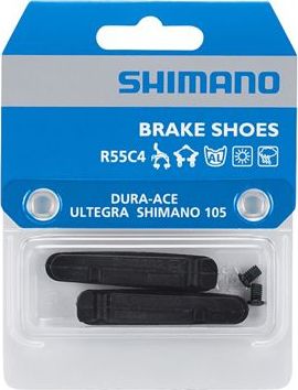 Комплект оригинальных тормозных вкладышей для картриджных шоссейных колодок Shimano и совместимых моделей иных производителей. Подходят практически к любым шоссейным тормозам: Dura-Ace, Ultegra, 105 нескольких последних поколений. Для алюминиевых ободов. Крепежный болт в комплекте.
