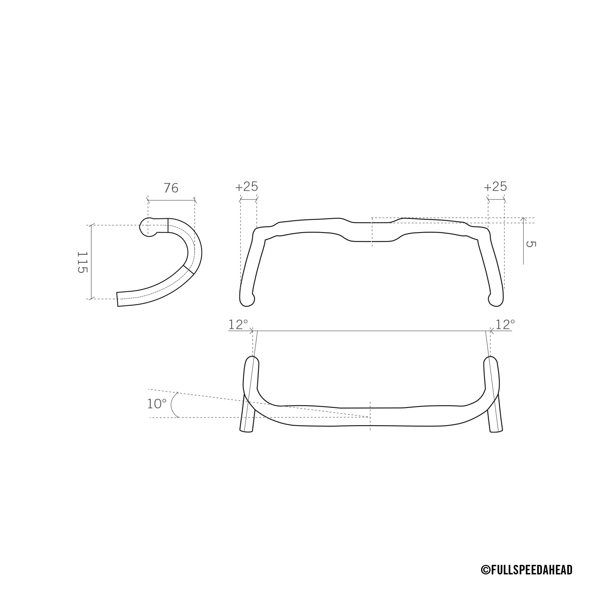 загиб частей нижнего хвата относительно осевой линии - 12° наружу, загиб вперед - 10°