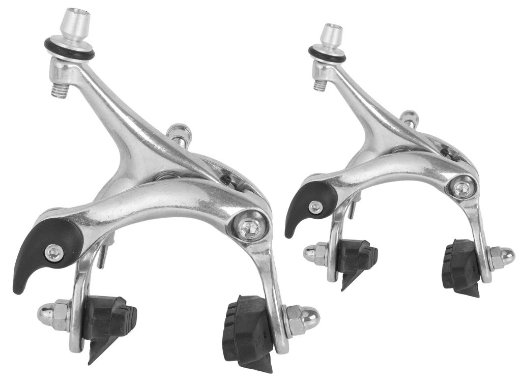 Комплект ободных клещевых тормозов для шоссейных велосипедов. Выполнены из алюминия методом ковки, имеется флажок для быстрого размыкания при демонтаже колеса.