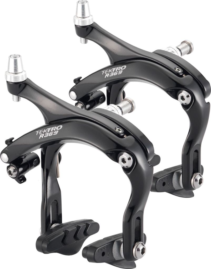 Комплект ободных клещевых тормозов для старых шоссейных и прочих велосипедов с увеличенными зазорами между колесами и отверстиями для монтажа тормозов в раме и вилке. Выполнены из алюминия методом ковки, конструкция классическая трёхрычажная, имеется флажок для быстрого размыкания при демонтаже колеса с функцией блокировки. Комплектуются колодками универсального компаунда для алюминиевых ободов. Полностью совместимы с современными шоссейными ручками.