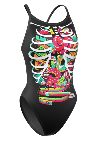 Крой спины – открытая спина, тонкие бретели дают дополнительную свободу движений рук и ощущение легкости в воде;