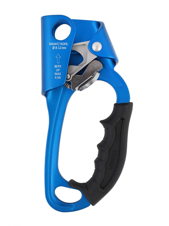 Зажим под правую руку предназначен для подъема по вертикальным или наклонным перилам, а также применяется при проведении спасательных работ. Соответствует EN 567 и ГОСТ EN 12841-2014 для использования в системах канатного доступа. Жумар совместим со статическими (ГОСТ EN 1891-2014) и динамическими (EN 892) веревками.