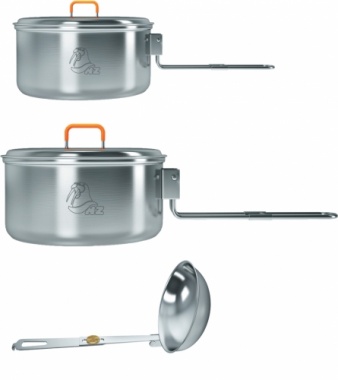 Набор посуды NZ SS-029. Kovea 31644 из нержавеющей стали с тонкими стенками подойдёт для кипячения воды и варки пищи на горелке для 1-2 персон. Конструкцией ручек кастрюль предусмотрена надежная фиксация при транспортировке (не гремят).