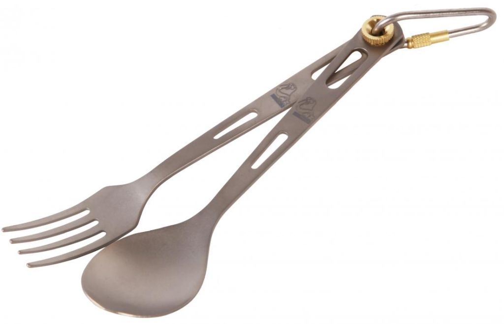 Титановый набор вилка-ложка NZ TC-310 Ti Cultery Set - легкая ложка с вилкой из титана с съемным карабином.