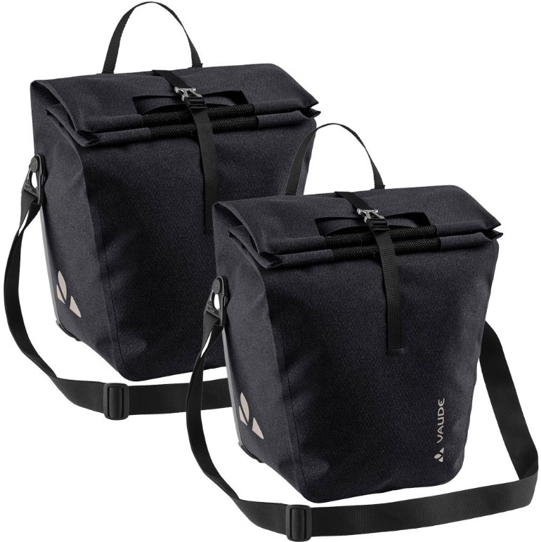 Сумки Vaude ReCycle дают возможность пользоваться снаряжением уровня кругосветки в повседневной жизни. Aqua Back относятся к верхней линейке экипировки Vaude и производятся непосредственно в немецкой штаб-квартире неподалёку от Боденского озера. Сумки изготовлены из водонепроницаемого, экологичного материала, не содержащего в своем составе ПВХ. Благодаря конструкции клапана roll top, объем сумки может быть расширен, при необходимости. Для более грамотной организации хранения внутри имеется дополнительный карман. На жестком основании сумки расположена фирменная система фиксации к багажнику QMR 2.0, имеющая понятную систему настроек и возможность быстрого снятия и установки. Для безопасного передвижения в темное время суток сумка оснащена рефлективными элементами. Может быть одновременно использована с сумками Toolbag Back, Sortyour Back, Addita Bag.