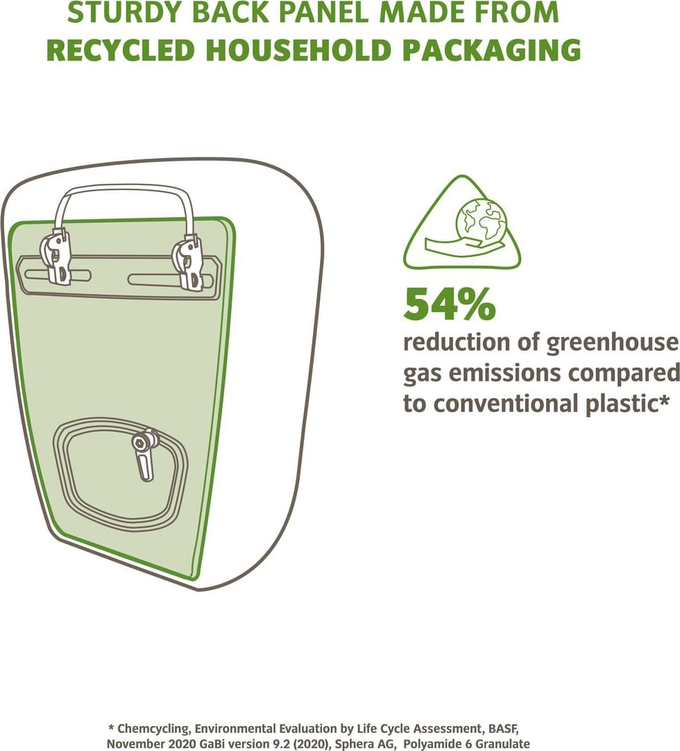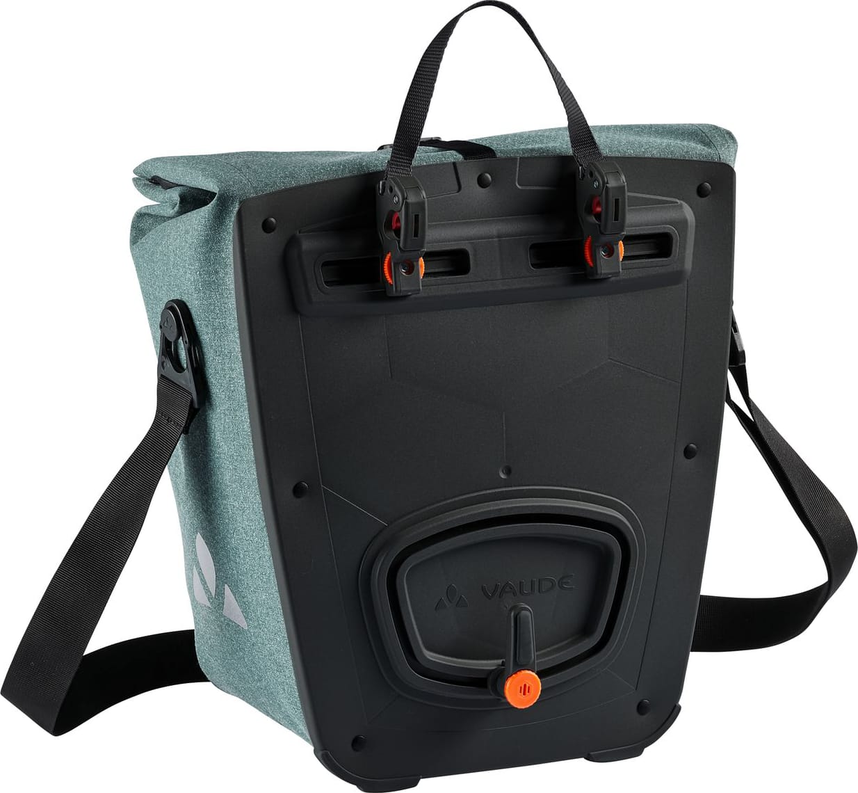 ReCycle Back — название говорит само за себя, и это наш основной продукт для чистой совести! Нашим разработчикам это удалось, и все компоненты крепежа изготовлены из переработанного пластика. Прочная, изготовленная на 100% из переработанных материалов сумка, не содержит ПВХ, а метод изготовления ультразвуковой сваркой делает ее водонепроницаемой. Эта стильная сумка-шоппер оснащена прочными ручками, обтянутыми мягкой лентой из переработанного полиэстера. Съемный плечевой ремень и светоотражающие логотипы завершают дизайн. Сумка является частью нашего ассортимента «Сделано в Германии», что означает, что она производится в штаб-квартире компании в Германии, не оказывая влияния на климат. В комплект поставки входит: 1 сумка объемом 23 л, которую можно прикрепить к рейке слева или справа. ReCycle Back можно зафиксировать непосредственно на крюке QMR с помощью U-образного замка (например, Abus 145/20).