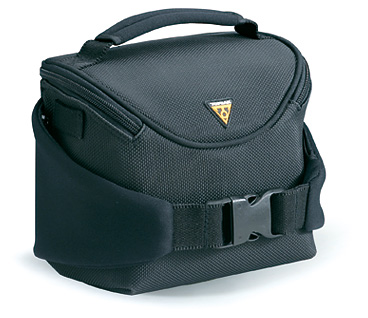 Компактная сумка на руль с рукояткой для переноски. Крепление Fixer 8. Поясное крепление, молния, мягкие отсеки, два боковых кармана, дождевой чехол. Клипса для телефонных чехлов Topeak. На кронштейн сумки можно установить велокомпьютер.