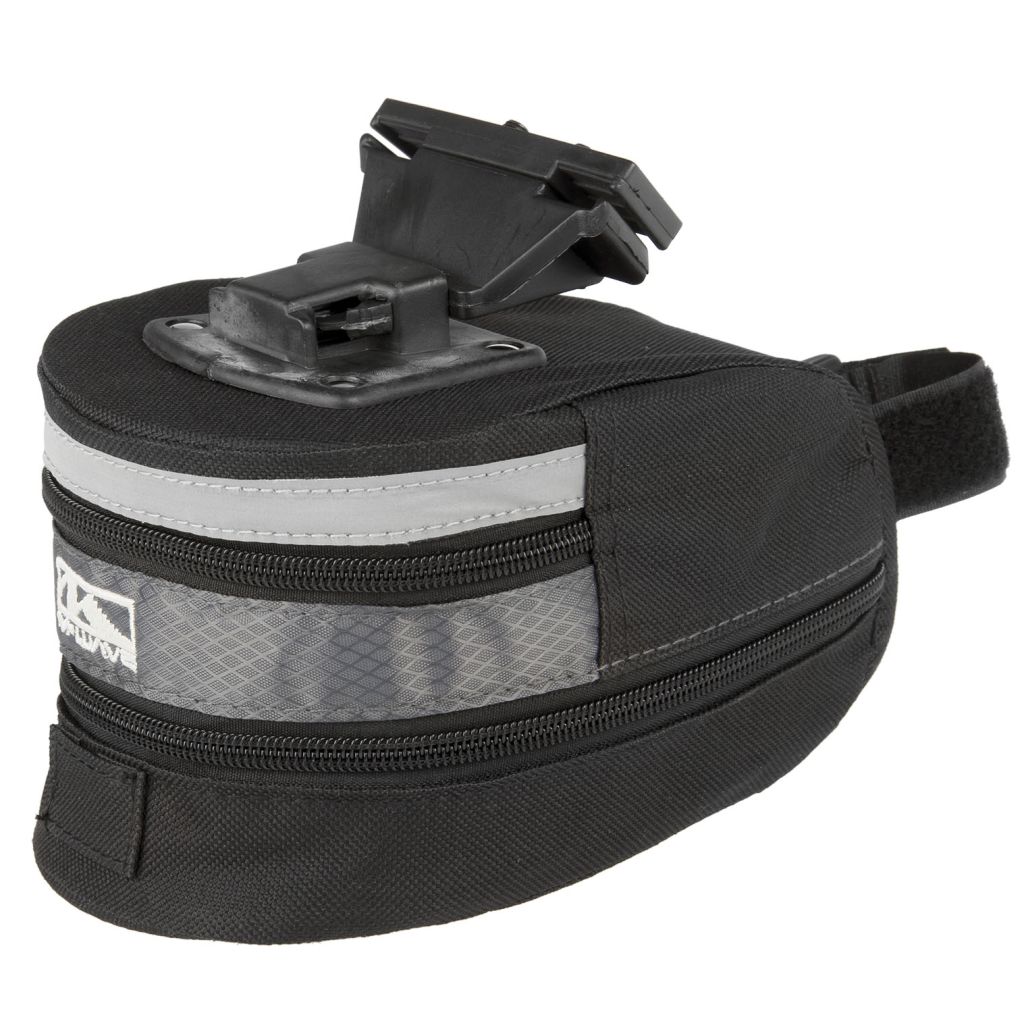 Подседельная сумка ACME M-Wave Reflex. Сумка выполнена из плотного нейлона, имеет одно большое отделение с возможностью увеличения объема, примерно в полтора раза, за счет клапана на замке в нижней части. По периметру верхней части проходит светоотражающая полоса, повышающая заметность велосипедиста в темное время суток. Сумка оснащена быстросъемным креплением к рамкам седла и фиксирующей стрепой к подседельному штырю. Кроме того, на внешней стороне днища имеются пара резинок, способных удерживать, например, запасную камеру или трубку
