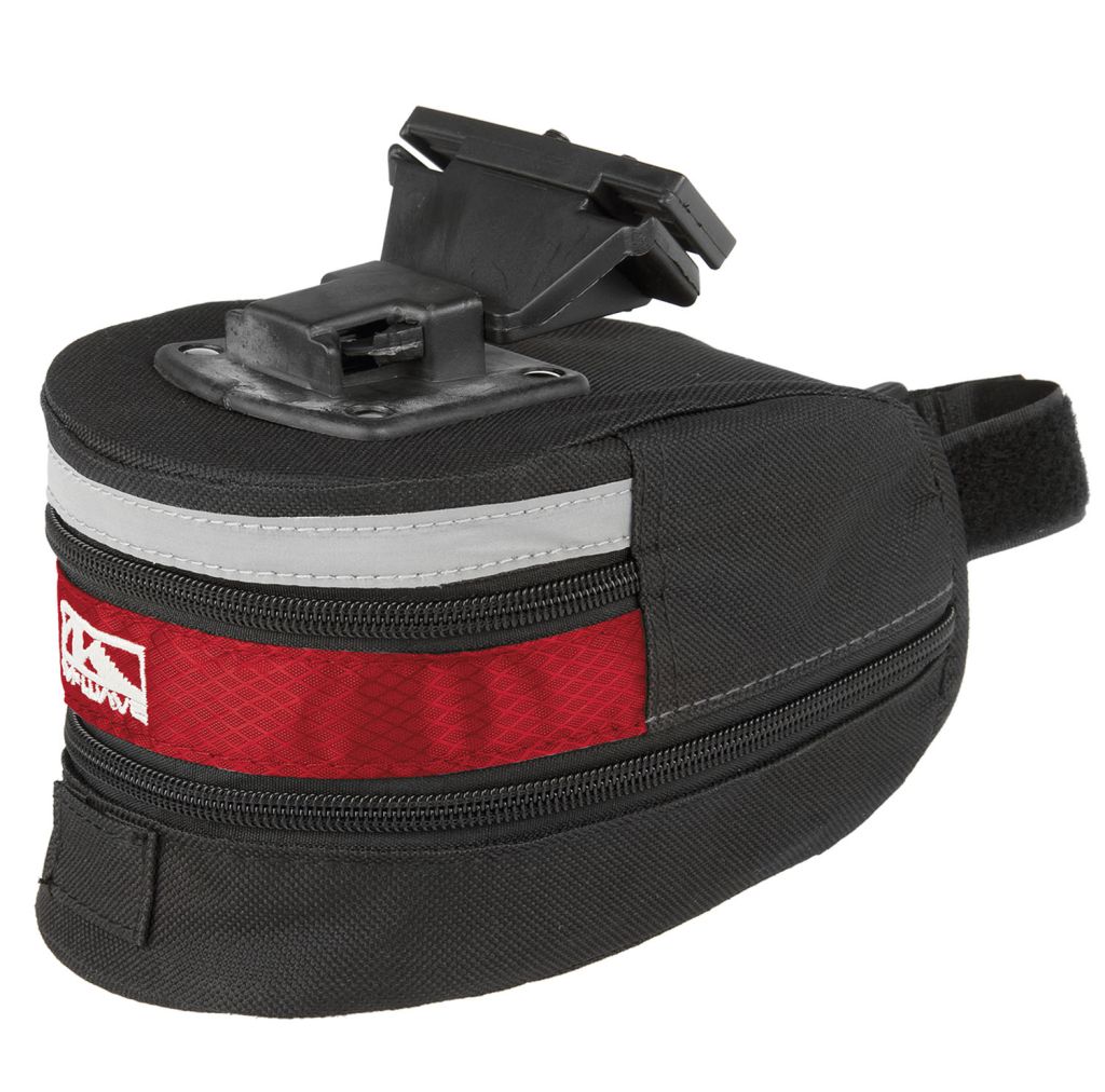 Подседельная сумка ACME M-Wave Reflex. Сумка выполнена из плотного нейлона, имеет одно большое отделение с возможностью увеличения объема, примерно в полтора раза, за счет клапана на замке в нижней части. По периметру верхней части проходит светоотражающая полоса, повышающая заметность велосипедиста в темное время суток. Сумка оснащена быстросъемным креплением к рамкам седла и фиксирующей стрепой к подседельному штырю. Кроме того, на внешней стороне днища имеются пара резинок, способных удерживать, например, запасную камеру или трубку
