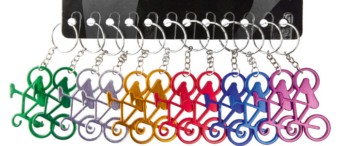 Простой и приятный аксессуар - брелок в виде велосипеда разных цветов. Идеален для ключа от велосипедного замка или небольшого аксессуара.