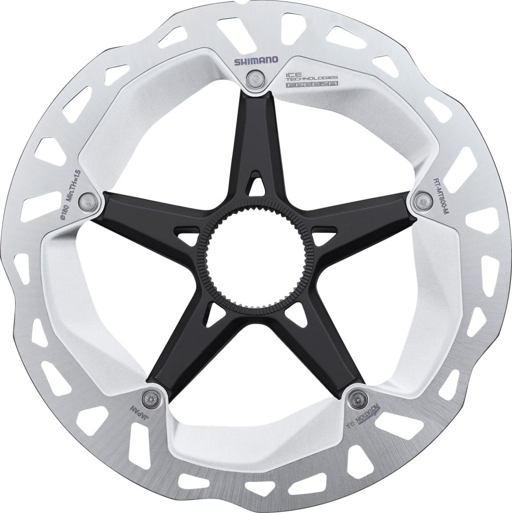 Тормозной диск профессионального уровня оборудования Shimano XT под крепление CenterLock. Алюминиевый паук, композитная тормозная поверхность ICE TECH - внешние стальные слои и рассеивающее тепло алюминиевая сердцевина. Более эффективное торможение и меньший вес.