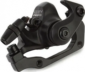 Стандартный механический дисковый тормозной калипер Tektro Aires MD-M300. Предустановленные колодки полимерного типа являются наиболее универсальным вариантом для ежедневной езды, обеспечивают уверенное торможение даже в дождь и показывают умеренный износ в ходе эксплуатации. Исключительно простая установка с помощью 5 мм шестигранника - для крепления на раме или вилке стандарта Post Mount или IS. Калиперы комплектуются адаптерами IS-PM (140/160 мм - задний, 160/180 мм - передний). На корпусе присутствует регулятор преднатяжения троса для тонкой настройки тормозной системы.