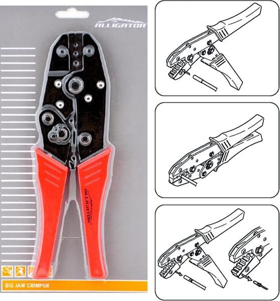 Клещи для обжима наконечников тросов и рубашек Alligator LY-T08-DIY. Профессиональный инструмент с заложенным большим ресурсом работы для нужд мастерских. Значительно упрощает и ускоряет работу с рубашками и тросами, а также их наконечниками при ощутимо более высоком качестве обжима, нежели без использования специального инструмента.