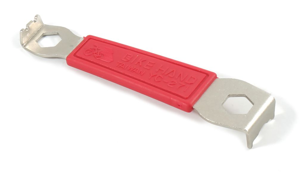 BikeHand YC-271 объединяет в себе ключи для бонок двух разновидностей и пару накидных ключей на 9 и 10 мм. Выполнен из стали. Для удобства пользования рукоятка выполнена прорезиненной.