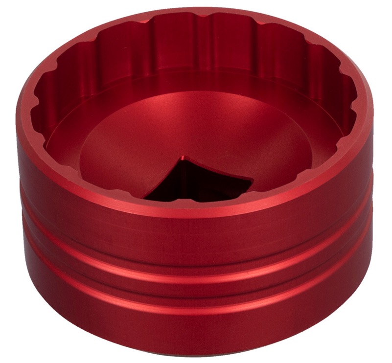 Все модели головок для установки каретки Unior изготавливаются на высокоточных станках с ЧПУ и используются для установки и демонтажа крышки каретки различных систем. Они изготавливаются из алюминия и покрываются прочной анодной пленкой красного цвета, что обеспечивает точность подгонки и исключает повреждение алюминиевой крышки каретки. Рифление на боковой поверхности головки обеспечивает надежность захвата при закручивании чашек вручную, тогда как наличие квадратного посадочного гнезда размером 1/2? обеспечивает простоту работы с динамометрическими ключами, реверсивными рукоятками и воротками.