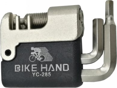 Компактный набор инструментов Bike Hand YC-285 с базовым набором функций. Он совмещает в себе три вида шестигранников 4/5/6 мм, крестовую отвертку и выжимку для цепи. Все эти инструменты могут пригодится вам не только в пути, но и в мастерской. Bike Hand YC-285 легко умещается в кармане рюкзака или поясной сумке.