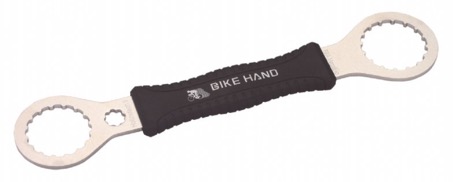 Универсальный съемник Bike Hand YC-307HF для кареток с внешними чашками Hollowtech II, а также FSA MegaEvo. Выполнен из легированной стали с прорезиненной ручкой для удобства использования. Круговой тип захвата шлицов позволяет распределить нагрузку равномерно, препятствую случайному срыву граней каретки.