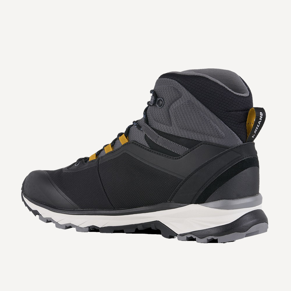 Для сохранения легкости и комфорта верх выполнен из синтетического материала, покрытого тканью. Защита обеспечивается технологией hotmad в области мыска, пятки, а также вокруг воротника. Носок и пятка также защищены технологией spray rubber, которая обеспечивает изоляцию. Очень округлый носок предназначен для облегчения переката стопы. Внутри мембрана Gore-Tex Extended Comfort Footwear обеспечивает максимальный климатический комфорт.