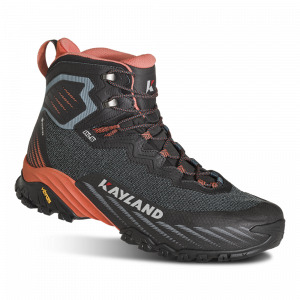 Верх Duke Mid GTX изготовлен из ткани с бесшовными вставками из полиуретана и включает мембрану Gore-Tex Invisible Fit с прямым ламинированием. Его особая конструкция позволяет значительно снизить вес. Сетчатый воротник защищен ламинированным полиуретаном и имеет задний спойлер, который сопровождает движение лодыжки. Защита от ударов обеспечивается благодаря конструкции Kayland Overlasting, которая сочетает в себе полиуретановую ленту, полностью защищающую носок, и удлинение подошвы до носка ботинка для обеспечения дополнительной защиты от ударов. Шнуровка точная и удобная, с лентами и двумя застегивающимися крючками, которые фиксируют шнурки во время прогулок.