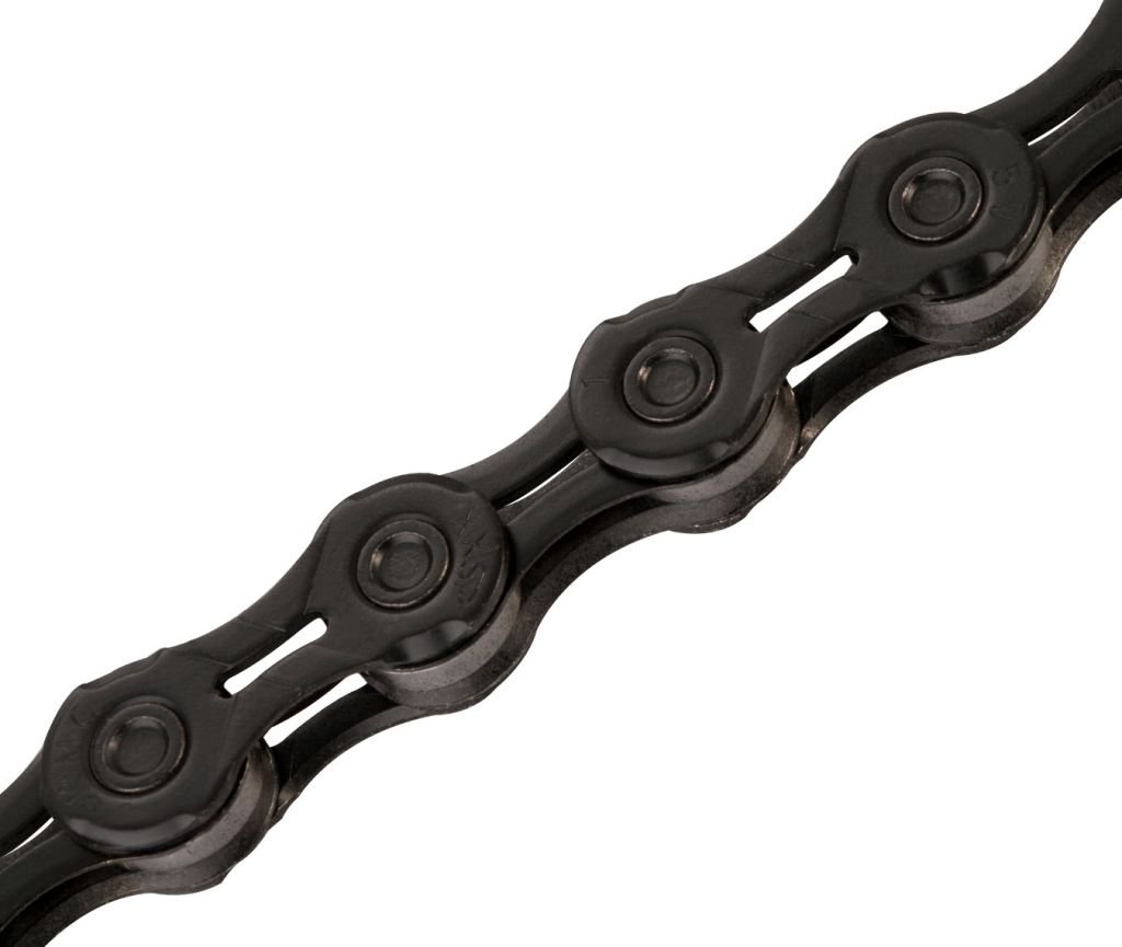 Цепь KMC X11 продвинутого уровня. Абсолютно симметричный дизайн, усиленные звенья с фирменной проковкой X-Bridge, снижающее шум и износ покрытие X-SP, проклепанные оси и высокая износостойкость - оптимальный вариант для установки на велосипеды с трансмиссией уровня Shimano Deore-Ultegra. Совместима с 11-и скоростными трансмиссиями: Shimano, SRAM, Campagnolо. Пластины с перфорацией позволяют снизить общий вес цепи.