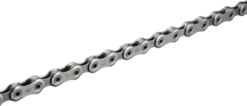 Цепь Shimano M9100 высшей серии оборудования для горных велосипедов XTR. Обладает пластинами особой формы, оптимизированной для безотказной работы с узкими звездами 12и - скоростных кассет. Пины цепи выполнены полыми для снижения массы. Пластины и ролики имеют обработку Sil-Tec, препятствующую появлению коррозии и способствующую увеличению срока цепи и трансмиссии вцелом.