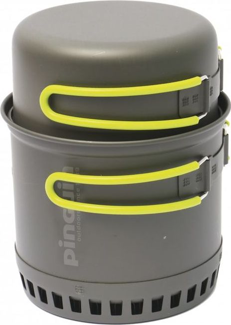 Компактный туристический набор посуды Pinguin Double X на 2 персоны. Изготовлен из анодированного алюминия, имеет складные силиконовые ручки, не подверженные нагреву. Теплообменник на дне большой кастрюли способствует экономии газа на 20-30% и повышению скорости закипания воды. Допускается перевозка газового баллона и горелки внутри набора для экономии места.