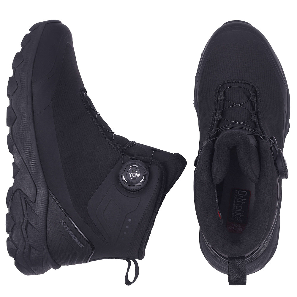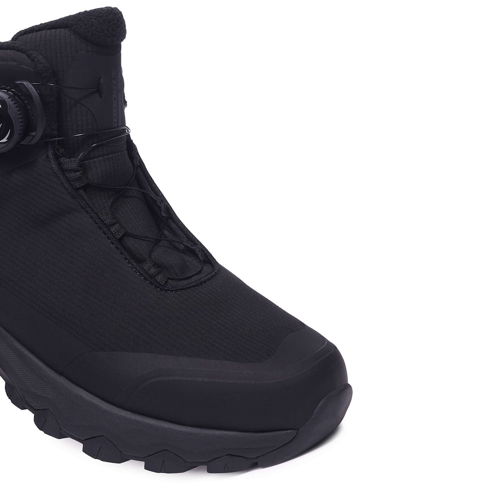 Системы быстрой шнуровки - позволяет легко и быстро надевать, и снимать обувь. Она обеспечивает надёжную фиксацию стопы и комфорт во время носки. Фиксация на ноге происходит с помощью высокотехнологичной системы, которая позволяет зафиксировать ногу простым вращением специального диска. Вместо обычных шнурков, затяжку производят тросики, скользящие по направляющим.